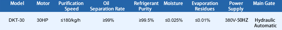 DKT-30 Refrigerant Recovery and Regeneration System Station is mainly for centralized regeneration treatment of refrigerant, and is a mobile small refrigerant regeneration plant.