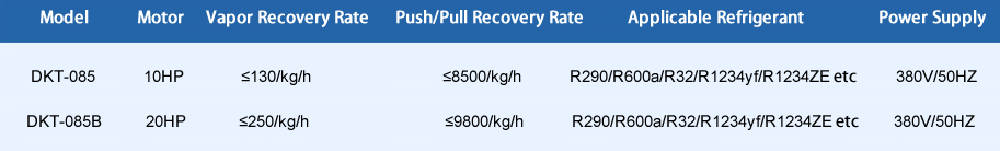 Specially designed and manufactured for the environment with explosion-proof requirements and flammable and explosive refrigerant design and manufacture of large-scale refrigerant rapid recovery equipment, equipment using oil-free compressor design suitable for a variety of refrigerants, applicable to refrigeration equipment manufacturers, nuclear power plants, chemical plants and other places to use.